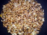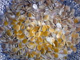 カボチャから種を取り出し、綺麗に洗います。 乾燥させます。 乾燥させたカボチャの種です。 |